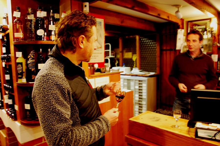 Первое, что поведал нам хозяин, прежде чем открыть молодое вино: beaujolais тоже бывает разным. На севере региона Божоле есть 10 выделенных зон, где особенности почв и микроклимата позволяют делать вина высочайшего качества (cru). И эти вина не обязательно выпивают до марта следующего года, — и пошли мы к полкам. Например, Côte de Brouilly (Кот-де-Бруйи), Morgon (Моргон) и Moulin-a-Vent (Мулен-а-Ван) — достаточно насыщенные и интересные вина, способные к выдержке. Живут они до 8-10 лет. Характер божоле крю очень разнится: Chénas (Шена), Julienas (Жюльена) — мощные и крепкие вина; тогда как Chiroubles (Ширубль), Fleurie (Флёри), Regnie (Ренье) и Saint-Amour (Сент-Амур) — напитки тонкие и ароматные.