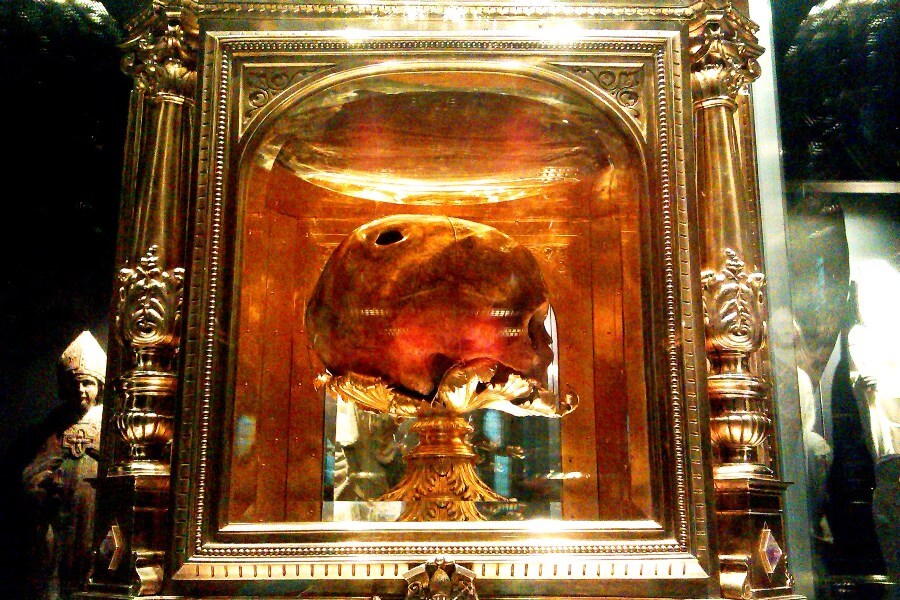 Вторым откровением явился «череп Святого Обера». Как и положено почитаемому раритету, он выставлен в церкви Сен-Жерве в золоченом реликварии. С тех пор, как «дырявый» череп был найден на Мон Сен-Мишеле в XI веке, этот объект красноречиво свидетельствовал в пользу легенды основания монастыря (а еще являлся назиданием для тех, кому приходится повторять трижды).