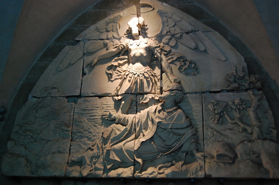 На этот раз в Авранш мы оказались в числе других гидов и с официальной делегацией из Монте-Гаргано (Monte Gargano на юге Италии в 490-ых годах прославился 4 явлениями Архангела Михаила; отсюда же по поручению Обера были доставлены на Мон Сен-Мишель реликвии Св. Михаила). Визит нам проводил мэр Авранш г-н Давид Никола — человек и пароход (мэр, историк, он же исследователь и гид-конферансье на Мон Сен-Мишеле). Два новых открытия ожидали нас в такой прекрасной компании.