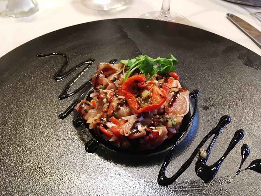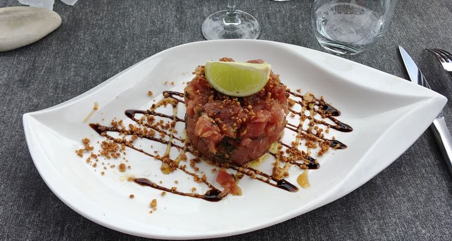 tartare de bœuf — сырая рубленая говядина. При этом тартар может быть вкусным из лосося, гребешка или тунца (как на нашем фото — tartare de thon)