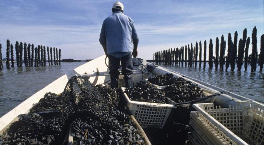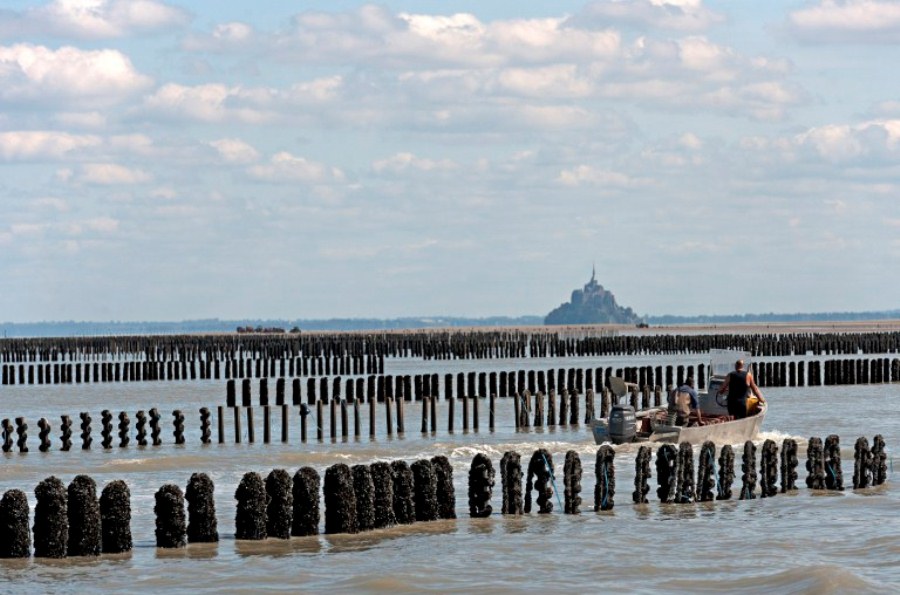 Начинается сезон мидий в бухтах, а с ним — непрерывный балет плоскодонных кораблей-амфибий, нагруженных полными мешками. Заказы на фермы поступают как из местных ресторанов и магазинов, так и по всей Франции (при этом 20% поставок всех мидий-бушо по стране осуществляется из бухты Мон Сен-Мишель).