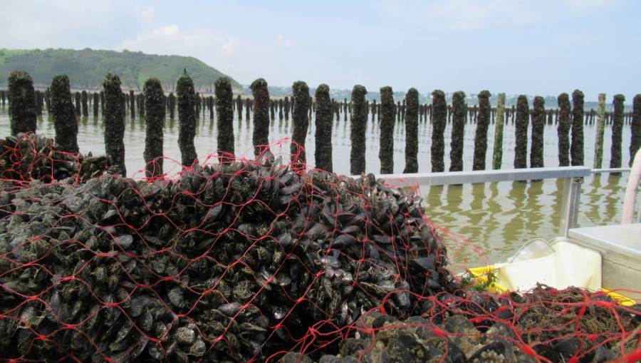 Мидии на сваях созревают примерно за год, поэтому фермеры одновременно управляют как промыслом тех, что готовы к сбору, так и выращиванием более мелких. Взрослые мидии отделяются от свай, просеиваются, моются, сортируются вручную, из них удаляют нить «byssus», на которой держатся ракушки, а затем упаковываются. Каждый bouchot держит на себе от 40 до 80 кг мидий.
