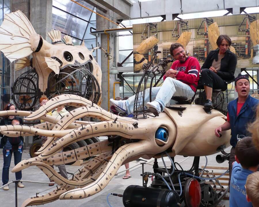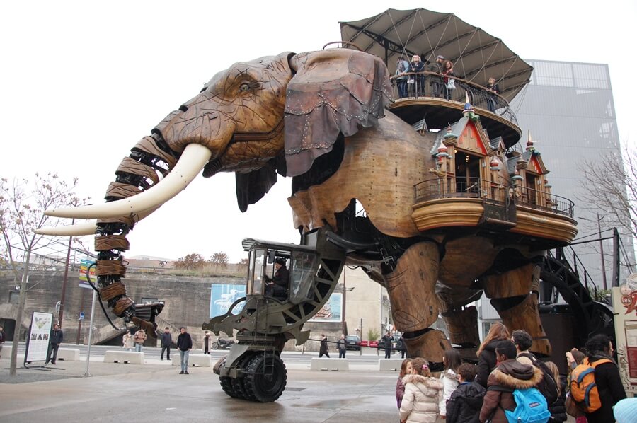 А заодно отправимся навстречу экстраординарным, но рукотворным чудесам: необычным машинам и гигантским автоматам, но прежде всего фантазии Человека и его энтузиазму. Все эти дива изобретаются, мастерятся и представляются всем на обозрение на т. н. Острове в Нанте. Сегодня на месте бывших судоверфей диковинные механизмы и невиданные чудища, всевозможные лодки, летательные и прочие аппараты движутся, вздымаясь и опускаясь, извергают «дым и пламень», возвращая этому острову дух приключений и тех времен, когда здесь строились и спускались на воду корабли, уходившие в неизведанные страны.
